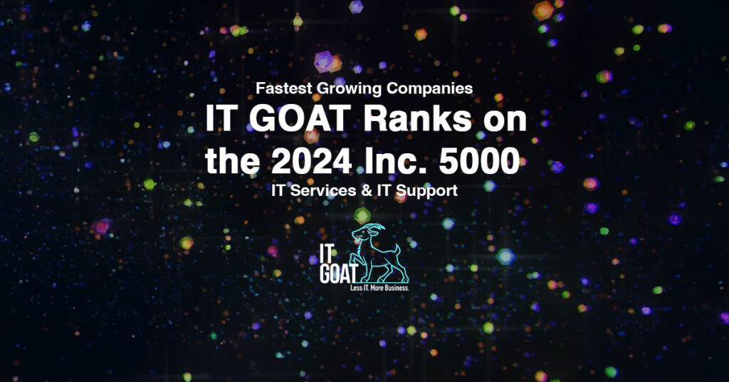 DALLAS, TEXAS – August 15, 2024 – IT GOAT, a leading provider of managed IT services and IT support, proudly announces its ranking as No. 62 on the 2024 Inc. 5000 list in the IT Services & IT Support category. This annual list, published by Inc. Magazine, highlights the fastest-growing private companies in America. IT GOAT’s remarkable growth also earned the company the distinction of being the 9th fastest-growing IT company in Texas and the 4th in Dallas.