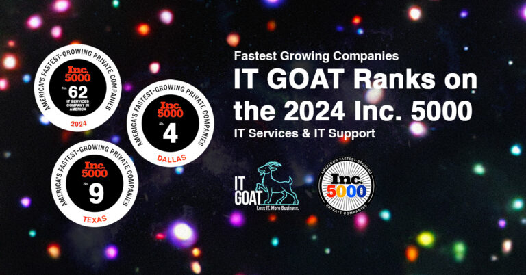 No. 62 on the 2024 Inc. 5000 List for IT Services & IT Support Placing 9th in Texas and 4th in Dallas, IT GOAT Achieves Prestigious Recognition for Rapid Growth and Industry Leadership. DALLAS, TEXAS – August 15, 2024 – IT GOAT, a leading provider of managed IT services and