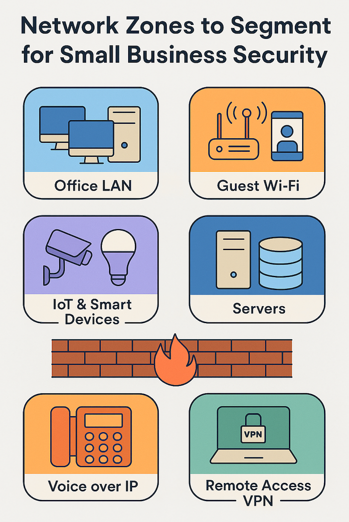 Separating different functions means a security breach in one area won’t automatically spread across your entire network. Traffic between zones routes through your firewall for inspection rather than communicating directly.