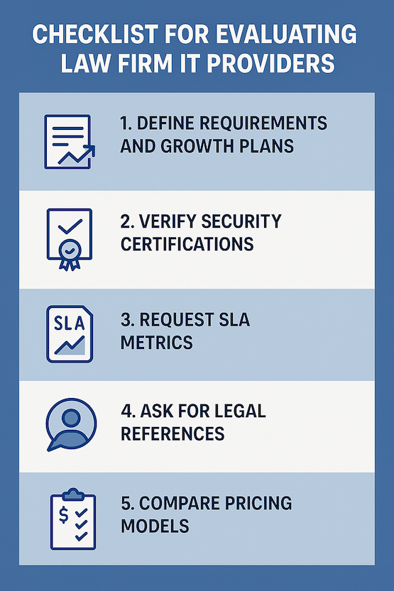 A structured evaluation process helps law firms compare providers objectively and identify the best fit for specific needs.