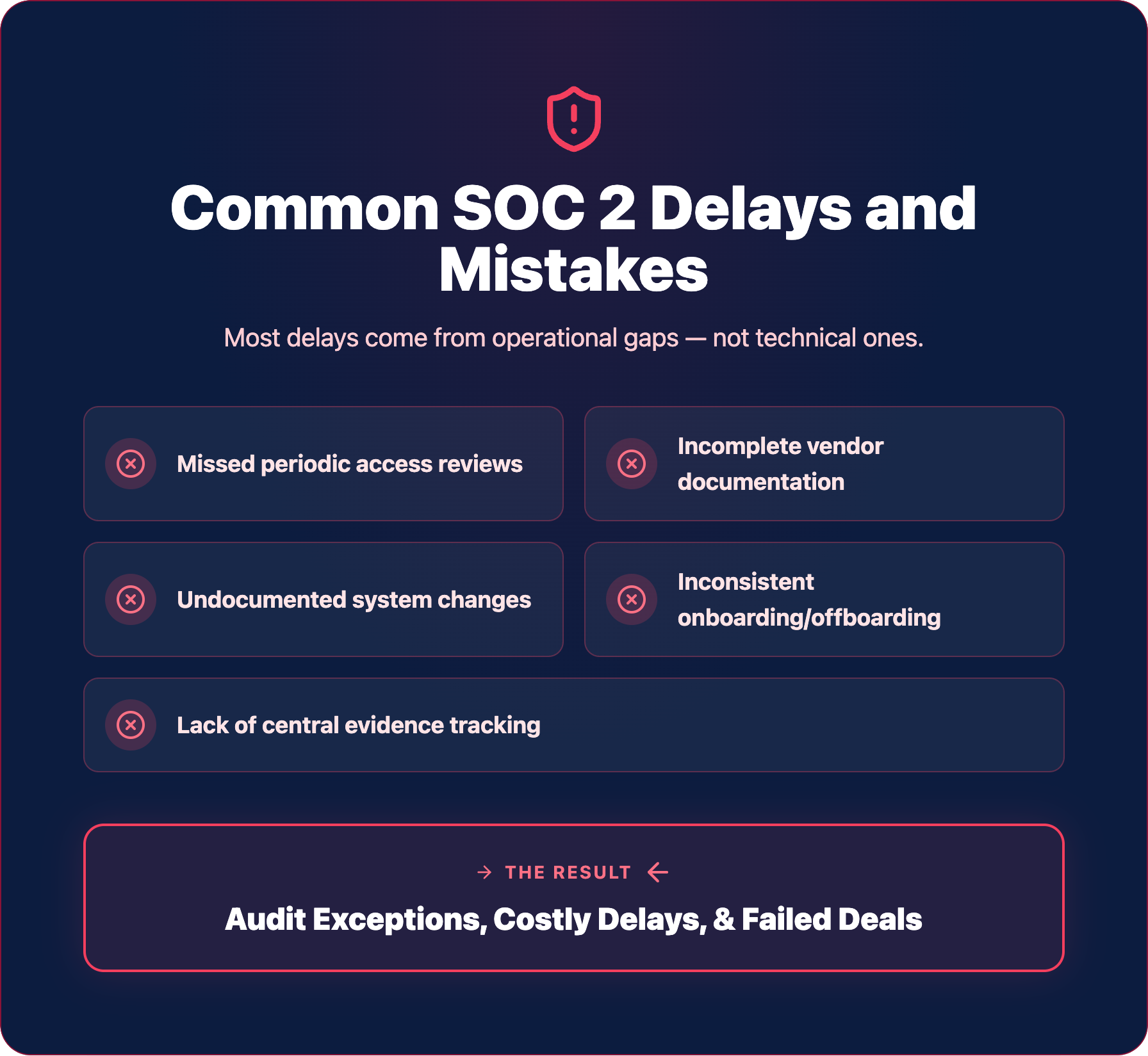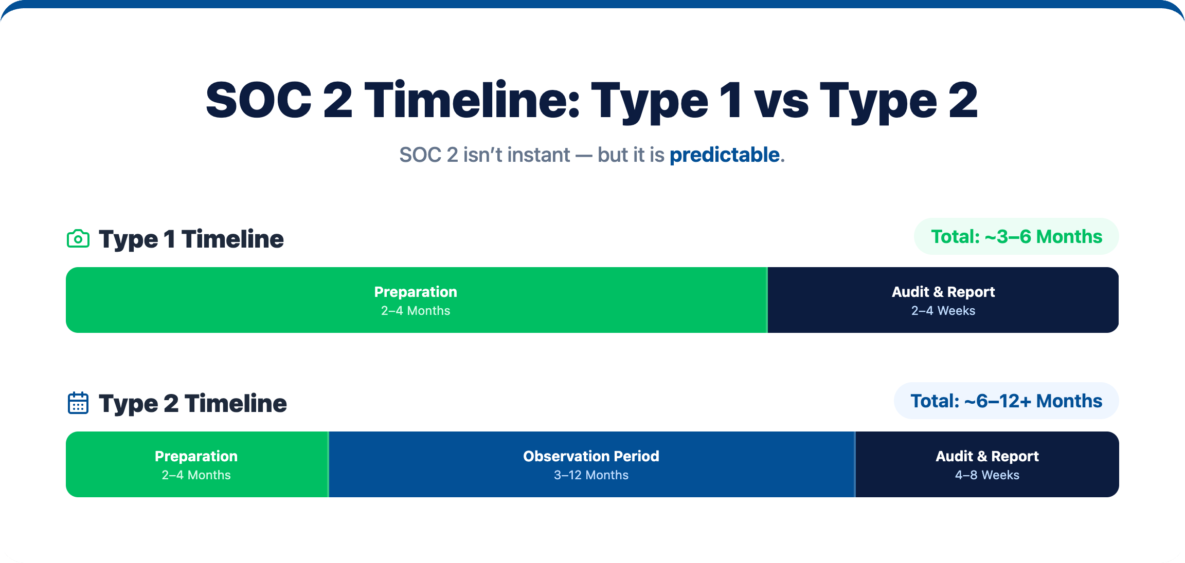 This guide breaks down realistic timelines for both Type 1 and Type 2 audits, walks through each phase of the compliance process, and identifies the variables that accelerate or delay your path to a completed report.